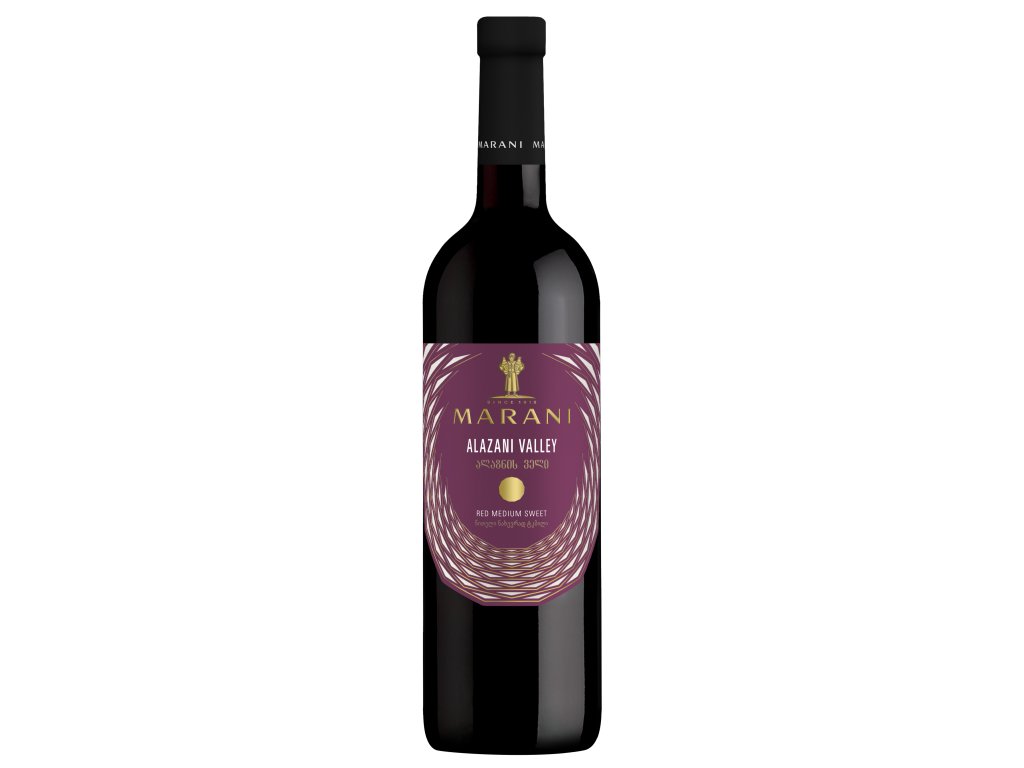 Marani Alazani Valley Red – polosladké gruzínské červené víno z Kachetie (odrůda Saperavi). Plná ovocná chuť s tóny černého rybízu, měkké taniny a sladko-kyselý závěr. Ideální ke kořeněným jídlům i dezertům.